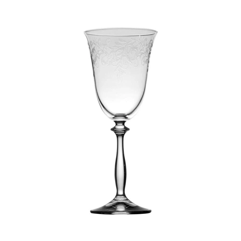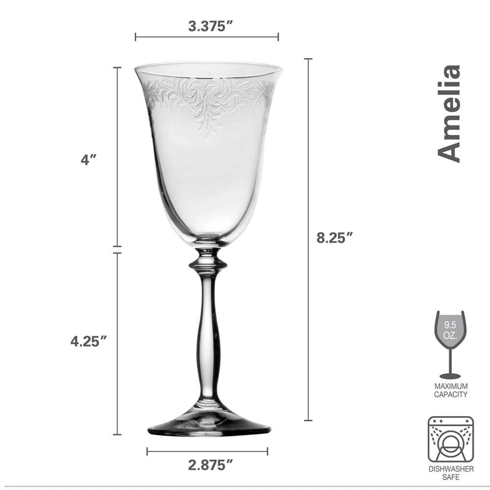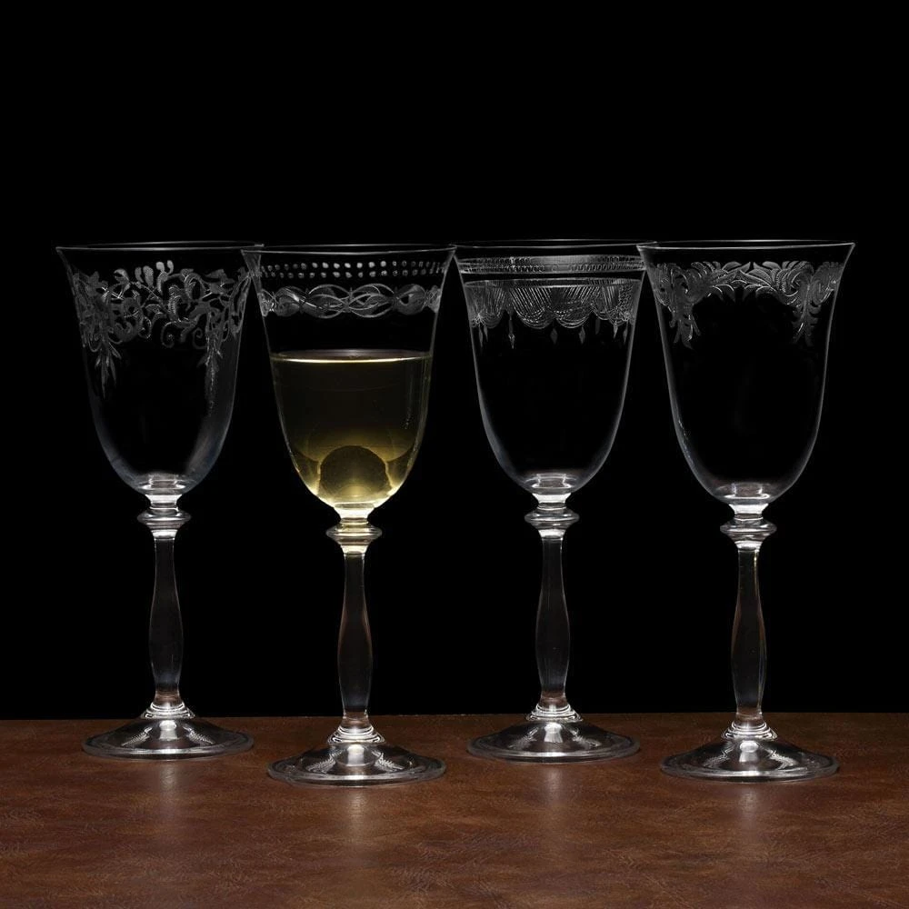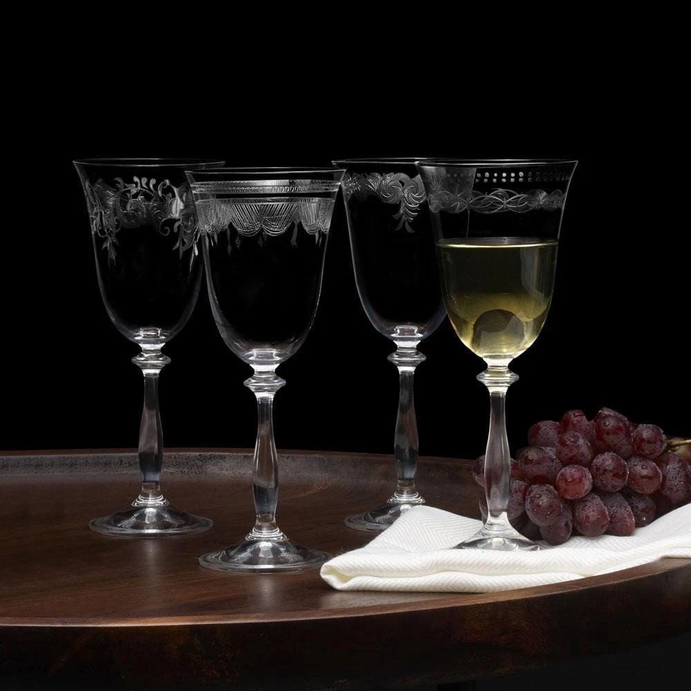 This Mikasa Amelia Set of 4 White Wine Glasses features a highly detailed, lace-like pattern that elevates the presentation at all your gatherings. Each glass has a unique design, creating an eclectic and subtly ornate style on the table and allowing individuals to easily identify their glass.