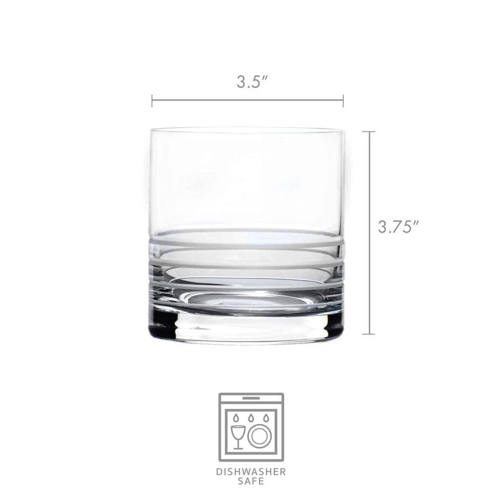Serve beverages in style with this Cal Set of 4 Double Old-Fashioned Whiskey Glasses by Mikasa. Beautifully crafted of lead-free crystal with distinct, horizontal stripes encircling the bases, this collection has a timeless design that is ideal for everyday use or casual dining. Set of 4 Double Old Fashioned Whiskey Glasses, each measures 3-3/4 inch high x 3-1/2 inch diameter, and holds 15-1/2 fluid-ounces. Dishwasher safe.