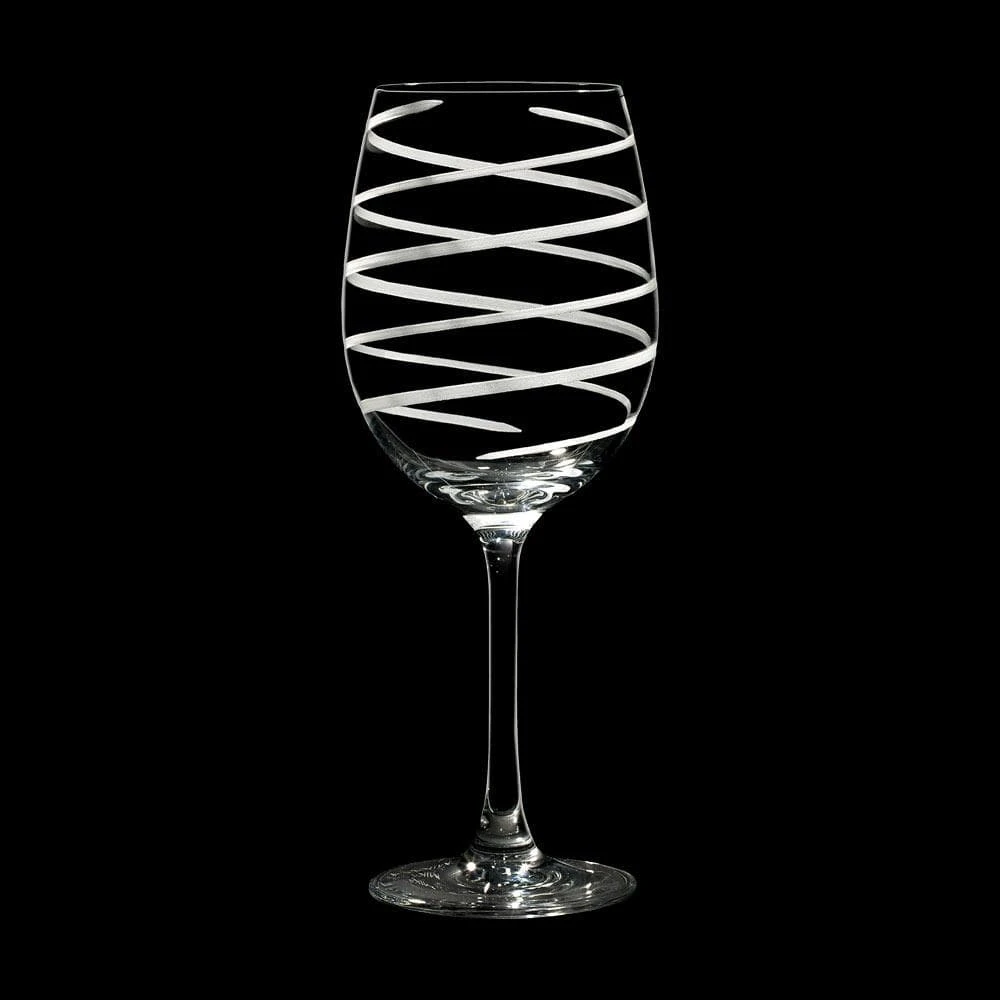 The fun and whimsical designs of the Cheers collection set a festive mood at any gathering. Each glass in the set of 4 is precision-etched with a different yet coordinating design. The dots, lines, and swirls are also distinctive, so each of your guests can easily identify their glass without the need for wine charms. Hand wash recommended. Set of 4 white wine glasses, each holds 16 ounces.