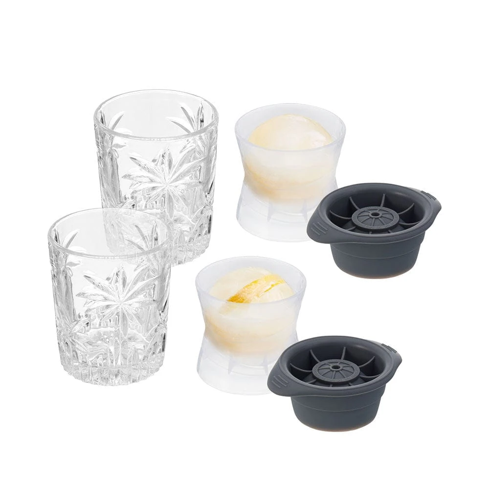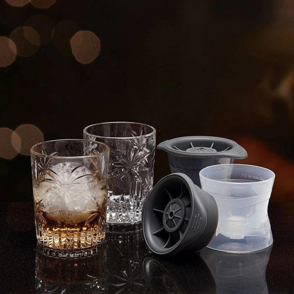 • Set includes (2) each: Double Old Fashioned Whiskey Glasses and Ice Ball Molds