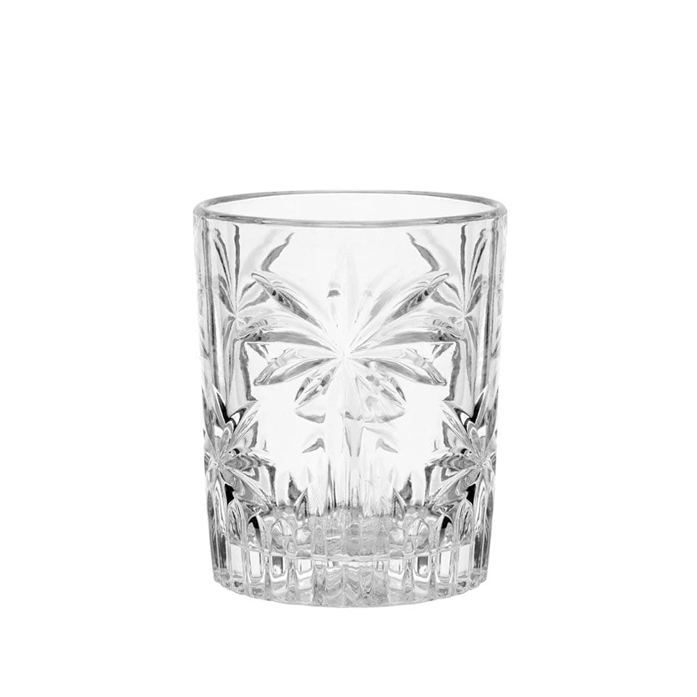 This Mikasa Craft Cocktail Set of 2 Double Old Fashioned Whiskey Glasses with Ice Molds features stylish glasses with a trendy palm pattern, and ice ball molds that create 2-1/2 inch sphere ice balls that fit in most standard size glasses and melt slowly in your drinks, so they stay colder longer without getting watered down or losing their flavor. The ice ball molds have a flexible silicone lid that comes off easily to remove ice, and stack to save space while in your freezer.