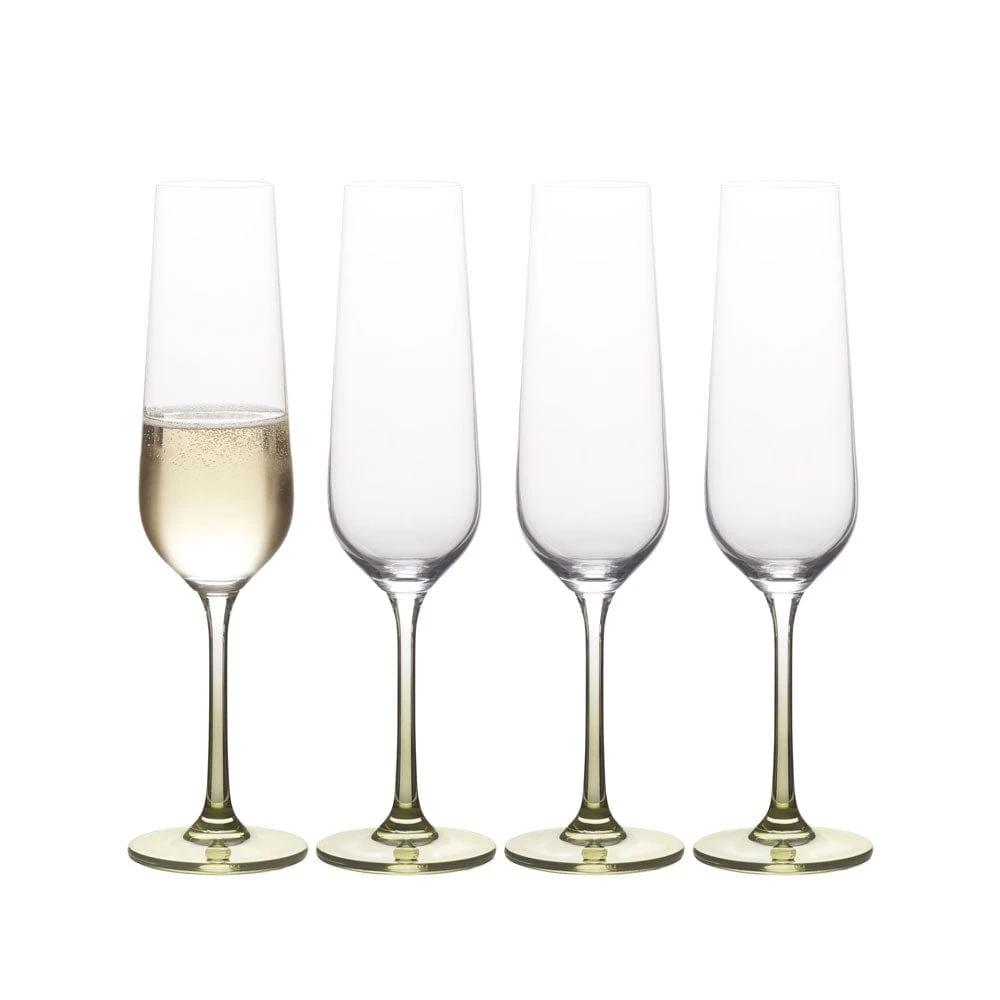 This Gianna Ombre Sage Flute Glass Set is perfect for enjoying your favorite wines and spirits any time with classic style. Features a traditional shape, with a subtle sage, ombre fade effect, making them perfect for pairing with casual or formal dinnerware.