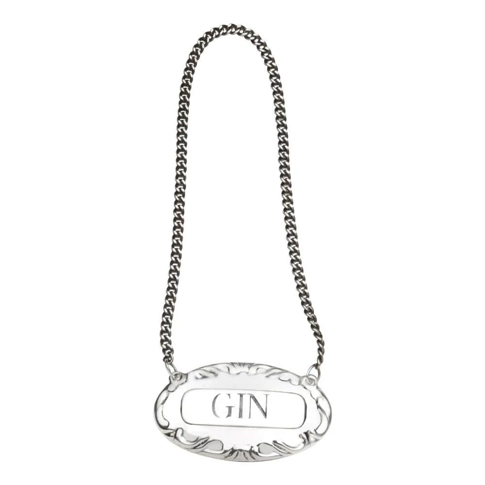 Add elegance to your home bar with this Empire Silver Gin Liquor Label. This liquor label includes a silver chain to hang around the neck of your decanter with the word “Gin”. Bring the luxury of sterling to your cocktail hour for elegance and sophistication. Crafted of sterling silver. Made in America. Bourbon liquor label measures 1-3/4 inch wide x 1 inch high.