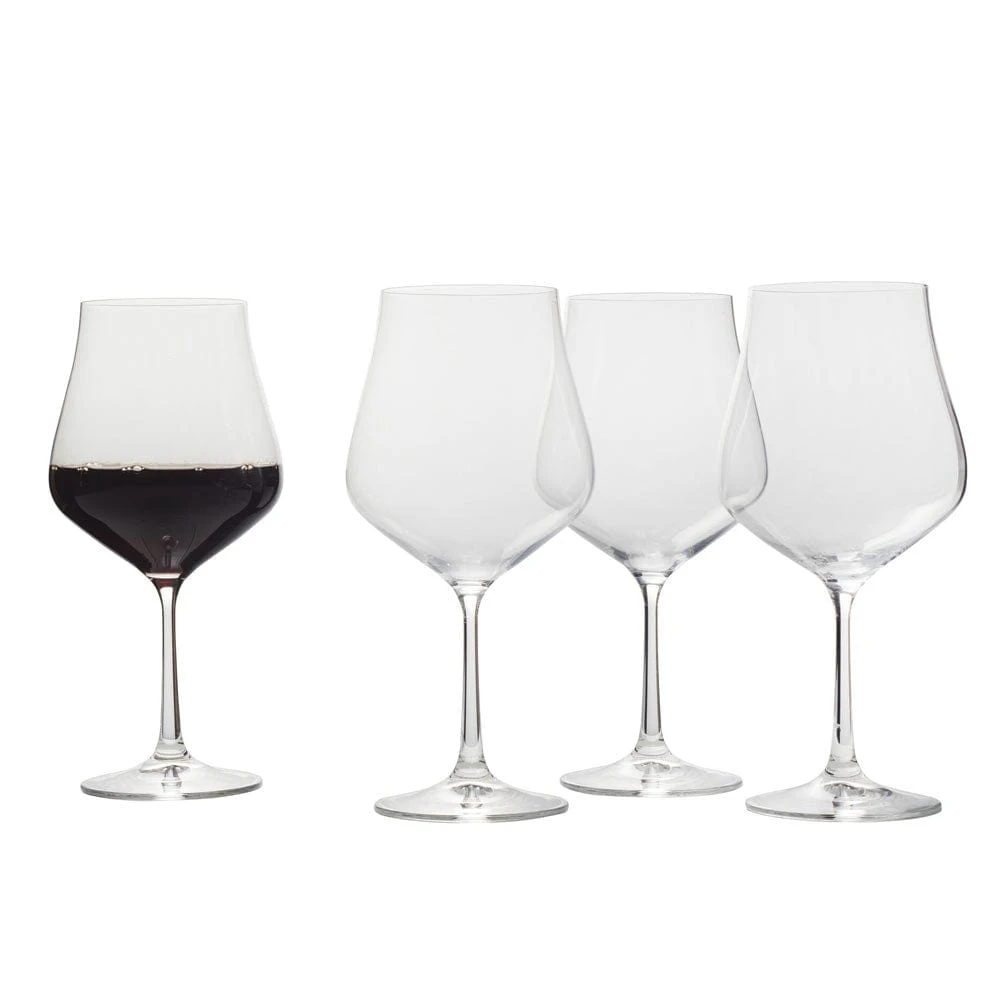 This Grace Set of 4 Red Wine Glasses feature a distinct tulip shape that flares at the rim to open your senses to the aroma and taste of your beverage as you sip.