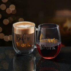 Top 10 🎉 Mikasa® Double Wall Mug and Stemless Wine Glass Set of 2, Rise and Unwind Sentiments ⭐