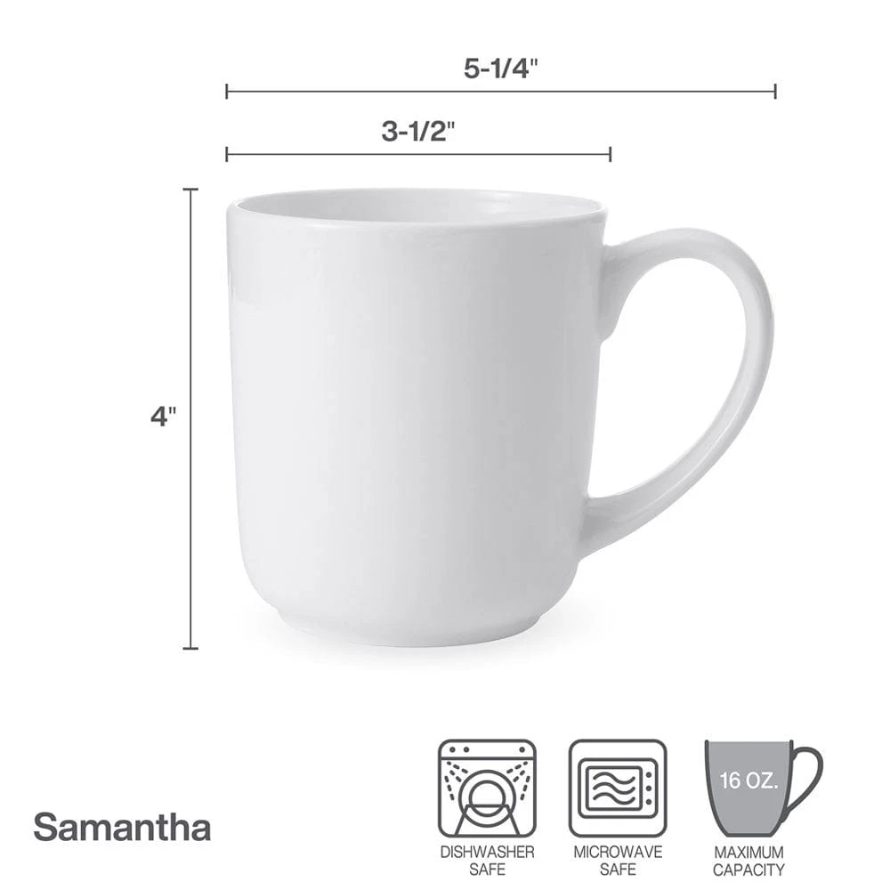This Samantha Set of 4 Mugs feature a stylish design in crisp white that will compliment and add a distinctly modern touch to your table.