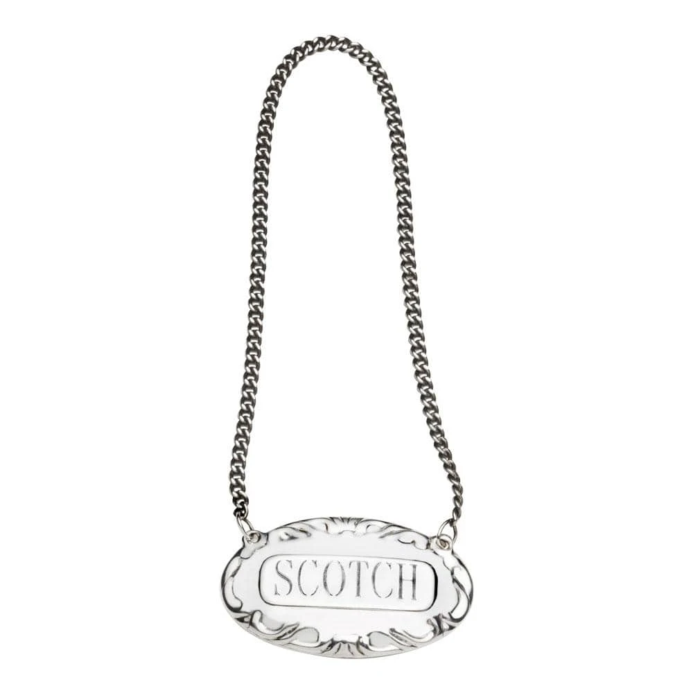 Add elegance to your home bar with this Empire Silver Scotch Liquor Label. This liquor label includes a silver chain to hang around the neck of your decanter with the word “Scotch”. Bring the luxury of sterling to your cocktail hour for elegance and sophistication. Crafted of sterling silver. Made in America. Bourbon liquor label measures 1-3/4 inch wide x 1 inch high.